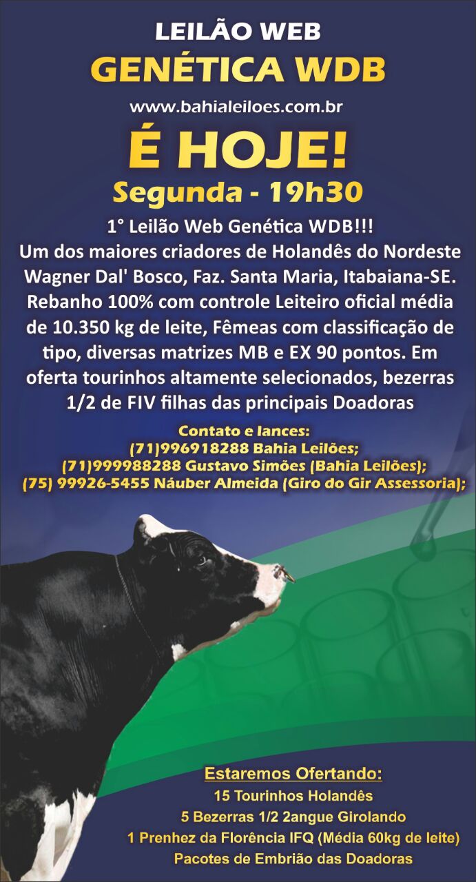 Já estão no ar pelo YouTube vídeos de todos os lotes do 1° Leilão WEB Genética WDB